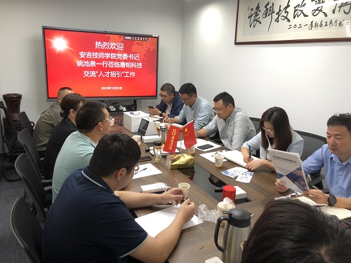2023年10月30日,安吉技师学院党委书记姚池泉一行莅临唐帕科技,交流人才招引工作,唐帕科技的总经理谢烨先生亲自接到了一行。