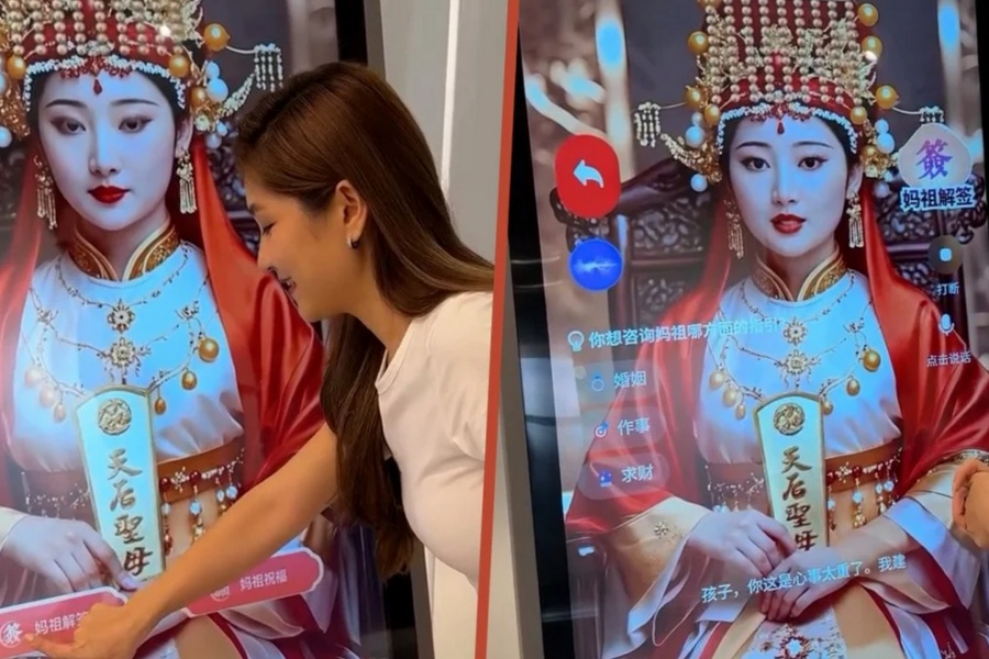The Tianhou Temple in southern Malaysia's Johor recently published footage showing believers communicating with the AI, or artificial intelligence, Mazu displayed on a screen. The deity is portrayed as a beautiful woman dressed in traditional Chinese costume.
