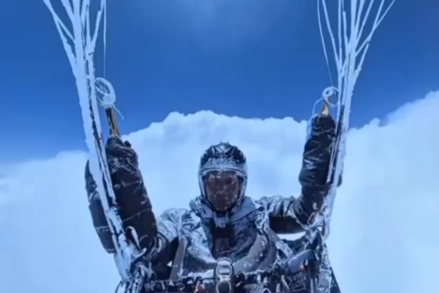 The moment was captured on camera, showing his face and clothes covered in frost. He remained conscious throughout the video while controlling the parachute.