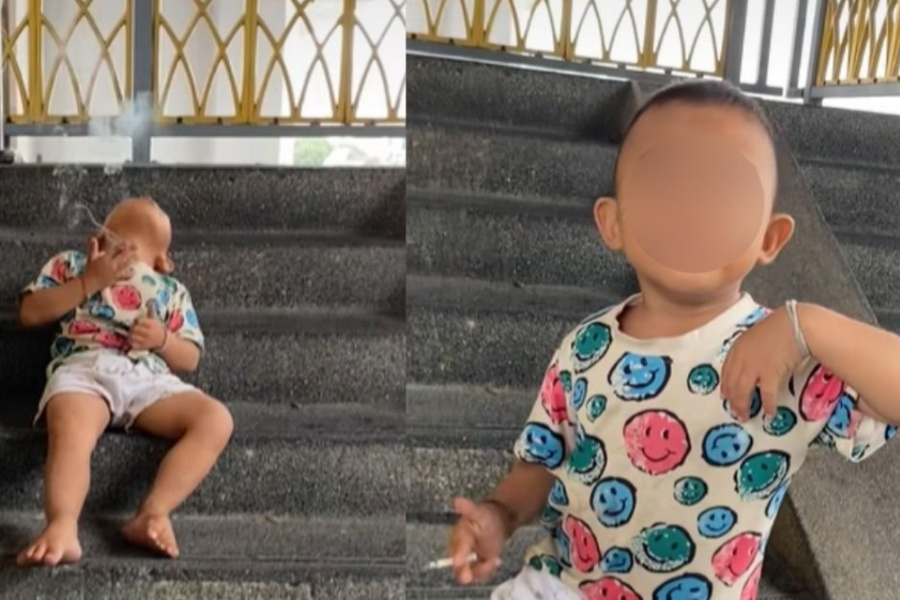 A 4-year-old boy in Bangkok was caught smoking under a bridge, a Thai Facebook user shared last month.