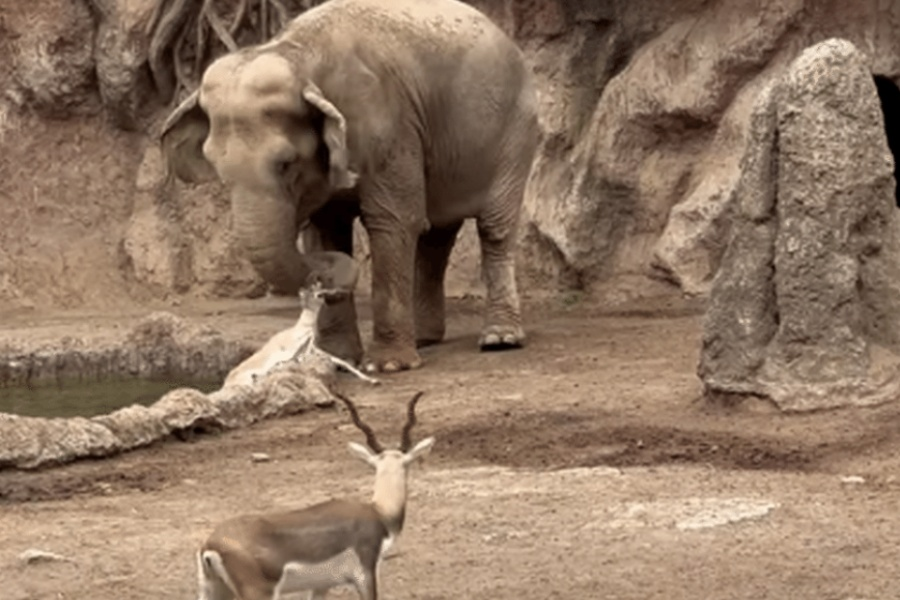 An elephant was recently filmed saving a gazelle that appeared to be drowning in a pond inside an enclosure at a zoo in Guatemala.