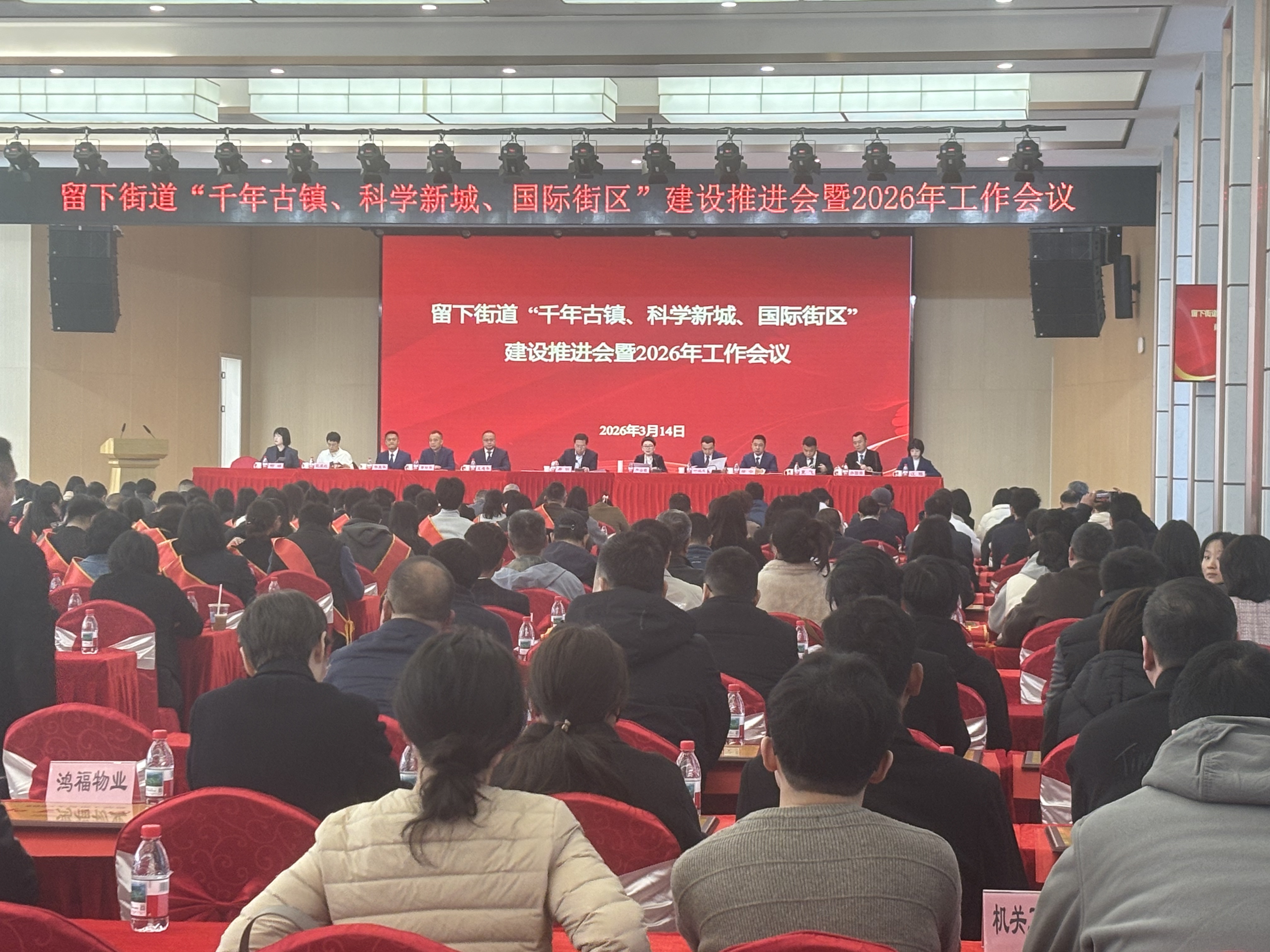 3月14日上午9:30,留下街道“千年古镇、科学新城、国际街区”建设推进会暨2026年工作会议在屏峰社区民生综合体三楼会场举行。会议总结2025年工作成效,表彰先进,部署新一年高质量发展任务。会上,浙江唐帕科技信息有限公司(简称“唐帕科技”)荣获留下街道2025年度“高校经济优质单位”称号,成为辖区校地融合发展的亮点企业。