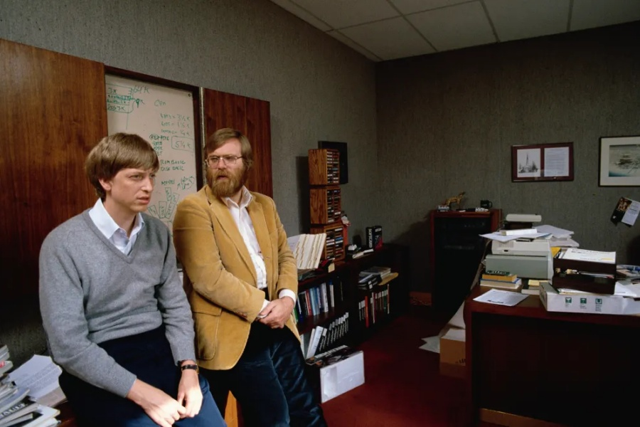 比尔·盖茨和保罗·艾伦在十几岁时相识,于1975年创立了微软,并为个人电脑开发了一种精简版的BASIC编程语言。